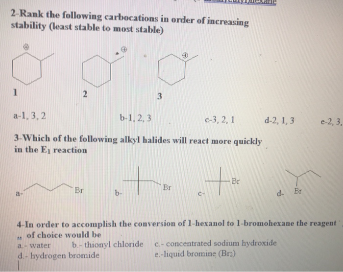 Solved 2 Rank The Following Carbocations In Order Of Chegg Com