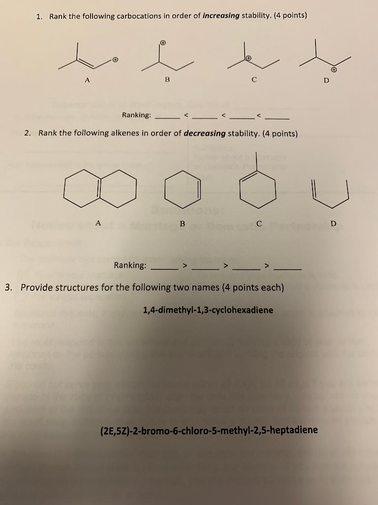 Solved 1 Rank The Following Carbocations In Order Of Chegg Com